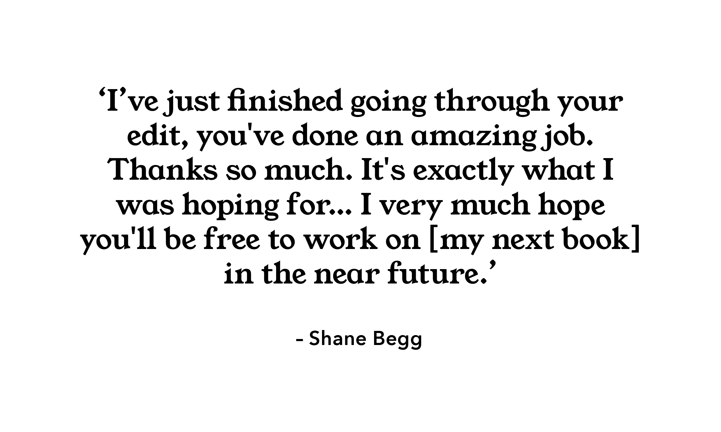 ‘The best editing stems from the underlying presence of all the great literature you have ever read, and thus a deep knowledge of the language and of story; a passion for new writing and new ways of witnessing life; and a sensitive ear for the unique voice of every manuscript that wings its way to your desk.’