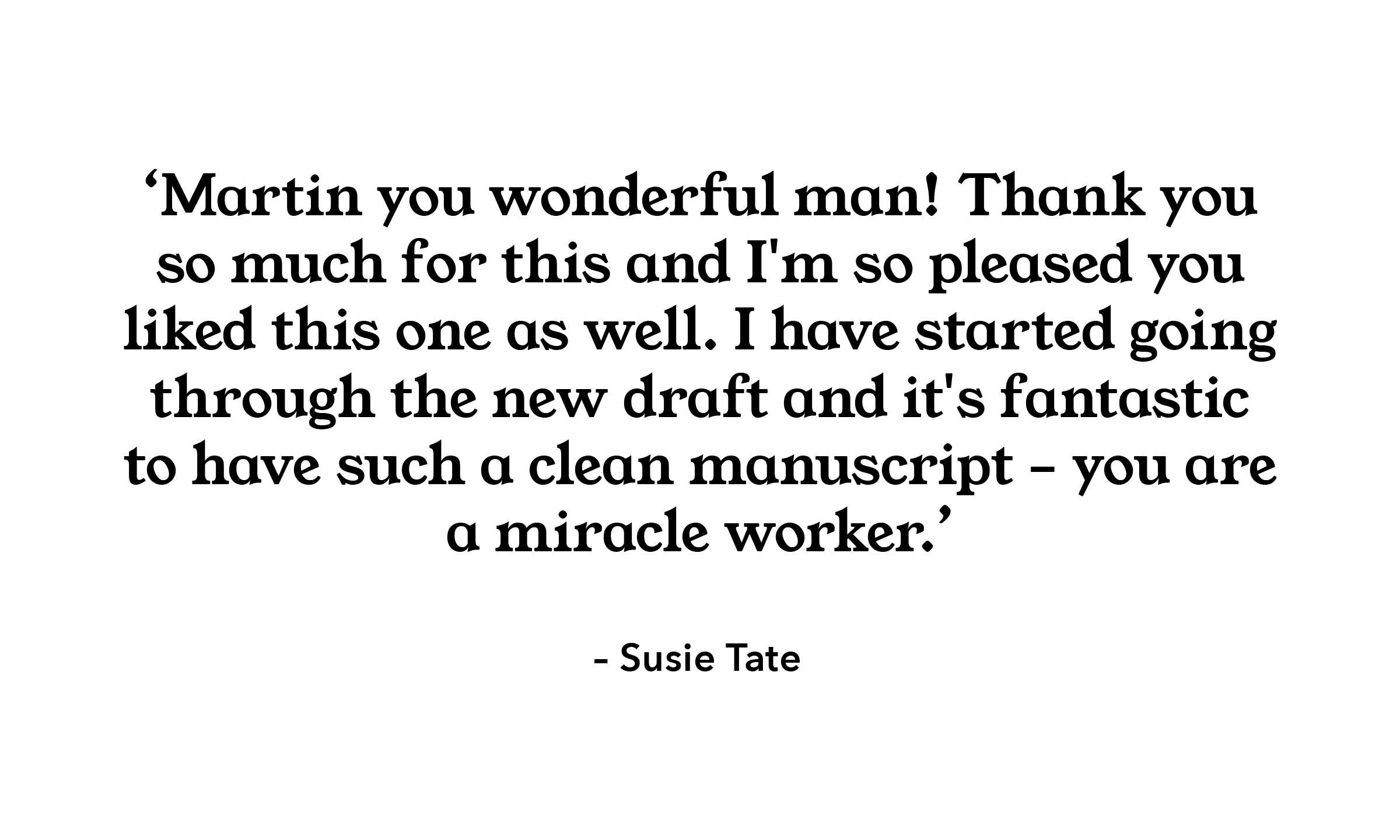 My renowned (blush) editorial services are available to all, from new to professional writers. Send me your manuscript for a quote, or just drop me a line to discuss.